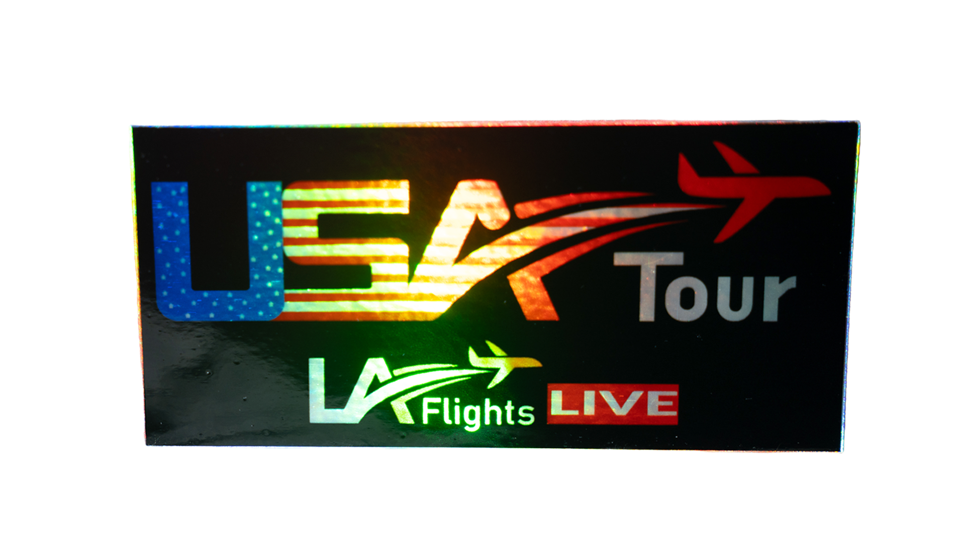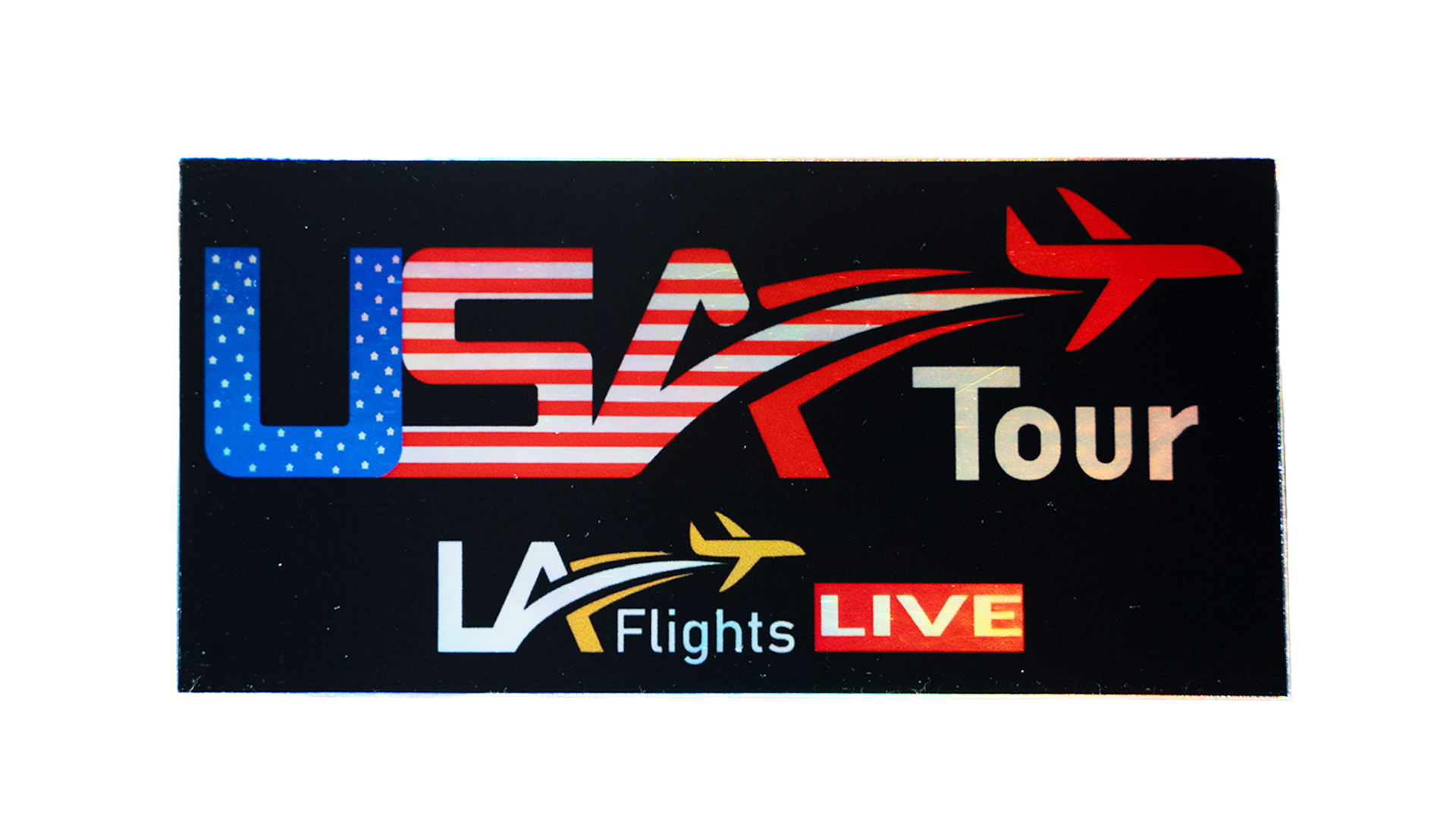 LA Flights USA Tour Holographic Stickers (Pack of 4, 4 x 2 in)